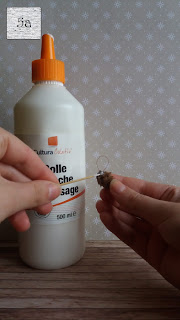 4. J'applique un point de colle sur le dessus de la pomme de pin. Attention à ne pas en mettre trop, la colle dégouline facilement...
